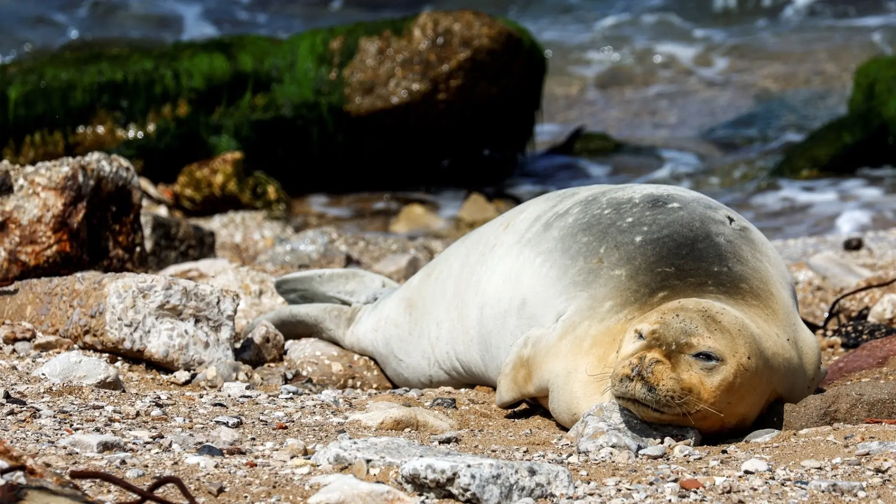 سبحت إحدى حيوانات فقمة راهب البحر المتوسط المهددة بالانقراض إلى شاطئ في يافا جنوبي تل أبيب لتنعم بقسط من الراحة وتتخلص من طبقة من جلدها، وهو ما اجتذب حشودا متحمسة للمشاهدة.