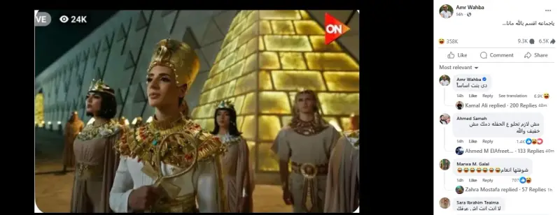 تعرض الفنان عمرو وهبة لهجوم من بعض النشطاء على منصات التواصل الاجتماعي، بعدما نشر صورة من العرض التقديمي لحفل افتتاح المتحف المصري الكبير، وعلّق بأنه هو الفتاة الموجودة في الصورة.