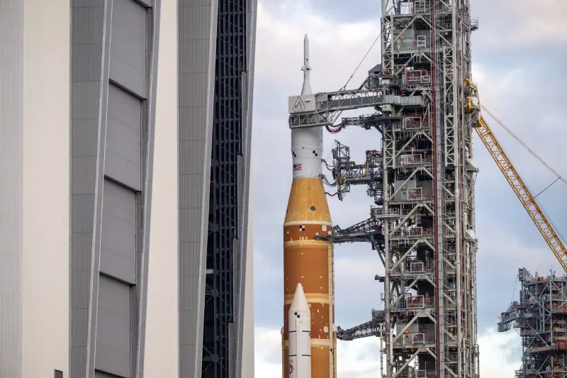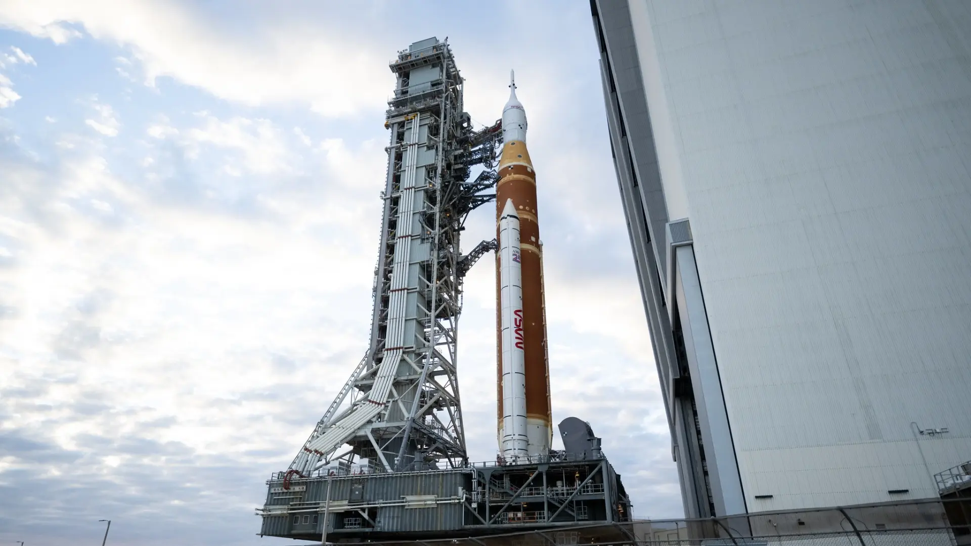وبدأ الصاروخ الذي يبلغ طوله 322 قدما (98 مترا) رحلته البطيئة بسرعة ميل واحد في الساعة (1.6 كيلومترا/ساعة) من مبنى تجميع المركبات في مركز كينيدي للفضاء عند الفجر.