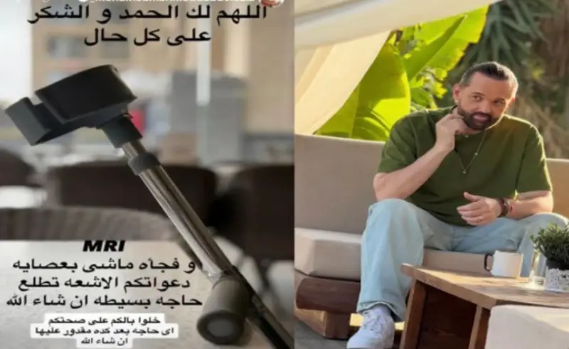 كشف الفنان المصري محمد محمود عبد العزيز عن تعرضه لإصابة مفاجئة في ساقه، اضطرته لاستخدام عكاز لمساعدته على الحركة، الأمر الذي أثار قلق جمهوره ومتابعيه على حالته الصحية.