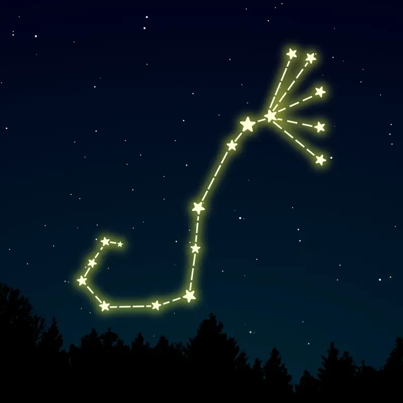 ويرتبط تمثيله على أنه عقرب بالأسطورة اليونانية عن العقرب الذي لدغ أوريون حتى الموت (يُقال إنّ هذا هو سبب غروب أوريون "كوكبة الجبار" بينما يرتفع برج العقرب في السماء). وأوريون هو صياد عملاق وضعه الإله زيوس بين النجوم باسم كوكبة أو مدار أوريون.