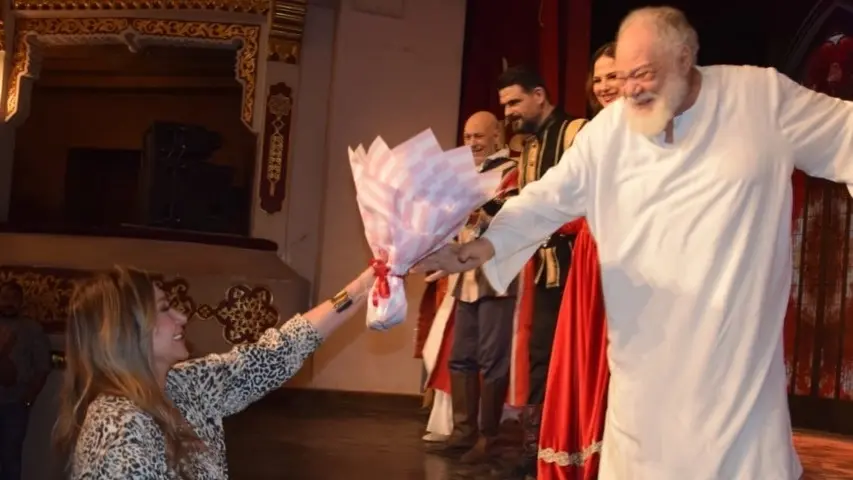 وردّ بطل العرض بالمثل في لحظة عفوية، قبل أن تتجه الأنظار إلى حالة التصفيق داخل القاعة، التي عبّرت عن تقدير واضح للأداء الفني وللأجواء التي جمعت نجوم المسرح في تلك الليلة.