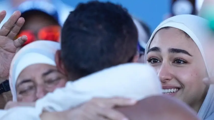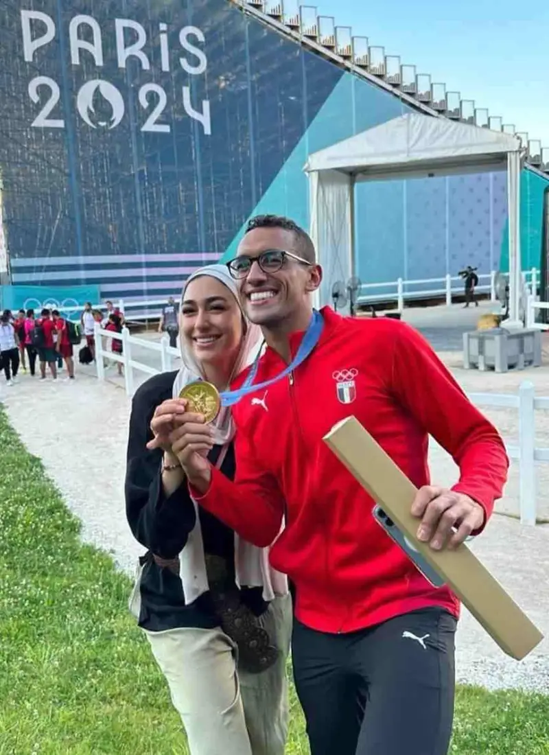 نظرات عينيها قالت أكثر بكثير من أي كلام لحظة إعلان فوز خطيبها بالذهبية في أولمبياد باريس، حملت عينيها اللامعة الحب والفرحة والفخر والكثير من المشاعر، جعل تلك الصورة التي التقطتها عدسات الكاميرات ترند على مختلف منصات التواصل الاجتماعي.