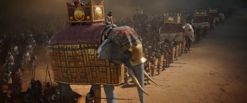 وبحيلة ذكية، استطاع سندباد أن يستغل معركة مع العملاق ليجذب انتباهه نحو أحد العيون الكبيرة التي كان يعمل بها القمر الصناعي الغريب الموجود في الجزيرة، وبتوجيه العملاق إلى هذه العيون، حُجز في دوامة من الضوء الساطع التي جعلت العملاق يتراجع بعيدًا.