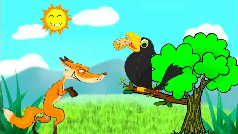 ضحك الثعلب وقال: "يا له من صوت رائع! لكن بما أن صوتك جميل، فالأفضل أن تحتفظ به لنفسك، الجبنة أفضل لي!" ثم ذهب مبتسمًا.