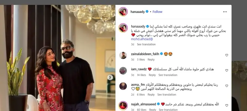 وفي الوقت نفسه، لا تزال الفنانة الكويتية تحتفظ بالصور التي تجمعها بمحمد الحداد عبر حسابها الرسمي على منصة إنستغرام.