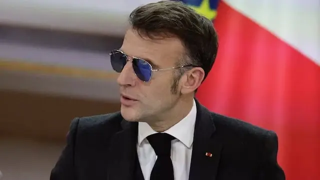شوهد الرئيس الفرنسي إيمانويل ماكرون خلال الأيام القليلة الماضية وهو يرتدي نظارات شمسية داكنة.