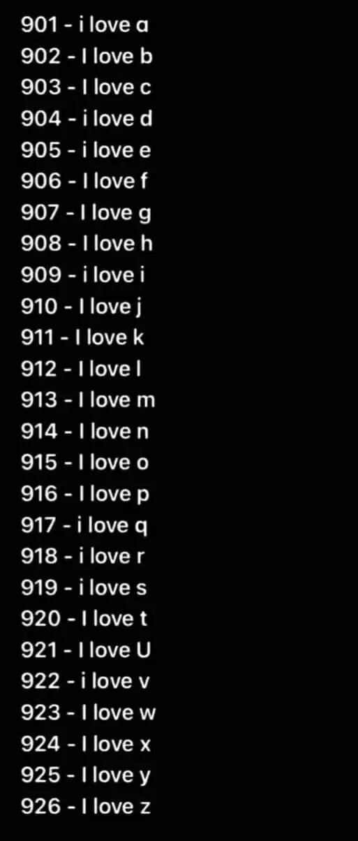 مثال على ذلك: 900 = I Love و26=Z - هذا يعني 926 أي أحب شخصا يبدأ اسمه بحرف Z.