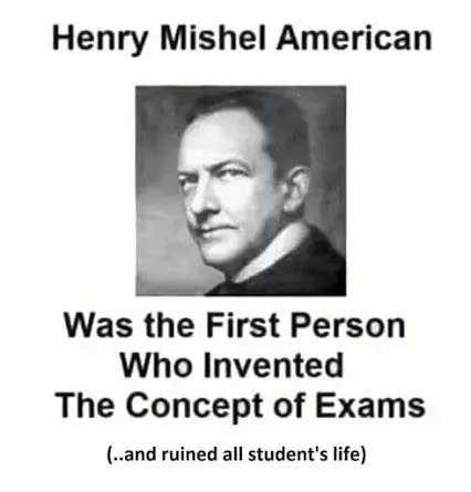 قد تباينت المصادر التاريخية حول تحديد هوية مخترع الامتحانات، فهناك من يشير إلى "هنري ميشيل" رجل الأعمال الأميركي، والبعض الآخر أنّ "هنري ميشيل" أستاذ الدراسات الدينية في جامعة أنديانا، هو أول من اخترع الامتحانات في أوائل القرن العشرين، لاختبار طلابه في المواد التي يدرسها لهم.