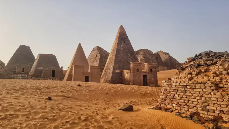 يضم السودان عددًا مذهلاً من الأهرامات، يبلغ إجمالها حوالي 220، وهذا الرقم هو أضعاف العدد الموجود في مصر تقريبًا، بنيت هذه الأهرامات على يد الحضارة النوبية، وهي كيان قوي ازدهر في الفترة ما بين 300 قبل الميلاد و350 بعد الميلاد، وهي شهادة على حقبة رائعة في تاريخ البشرية.