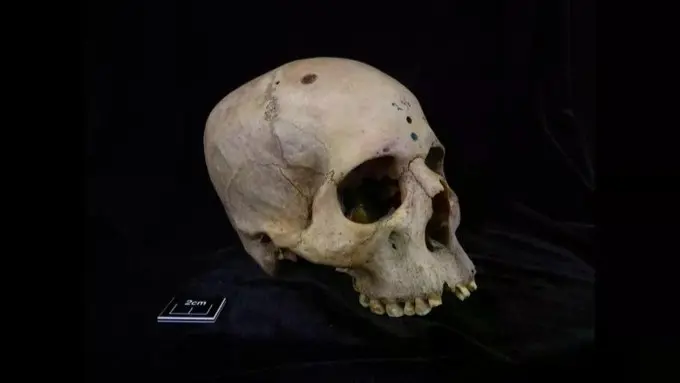 لاحظ الباحثون أنّ الرجل كان يعاني من ورم، ولاحظوا نحو 30 آفة مستديرة صغيرة منتشرة عبر جمجمته. وقد اندهش الباحثون عندما اكتشفوا أنّ شخصًا ما قد قام بقطع المنطقة المحيطة بالآفات، على ما يبدو باستخدام أداة حادة.