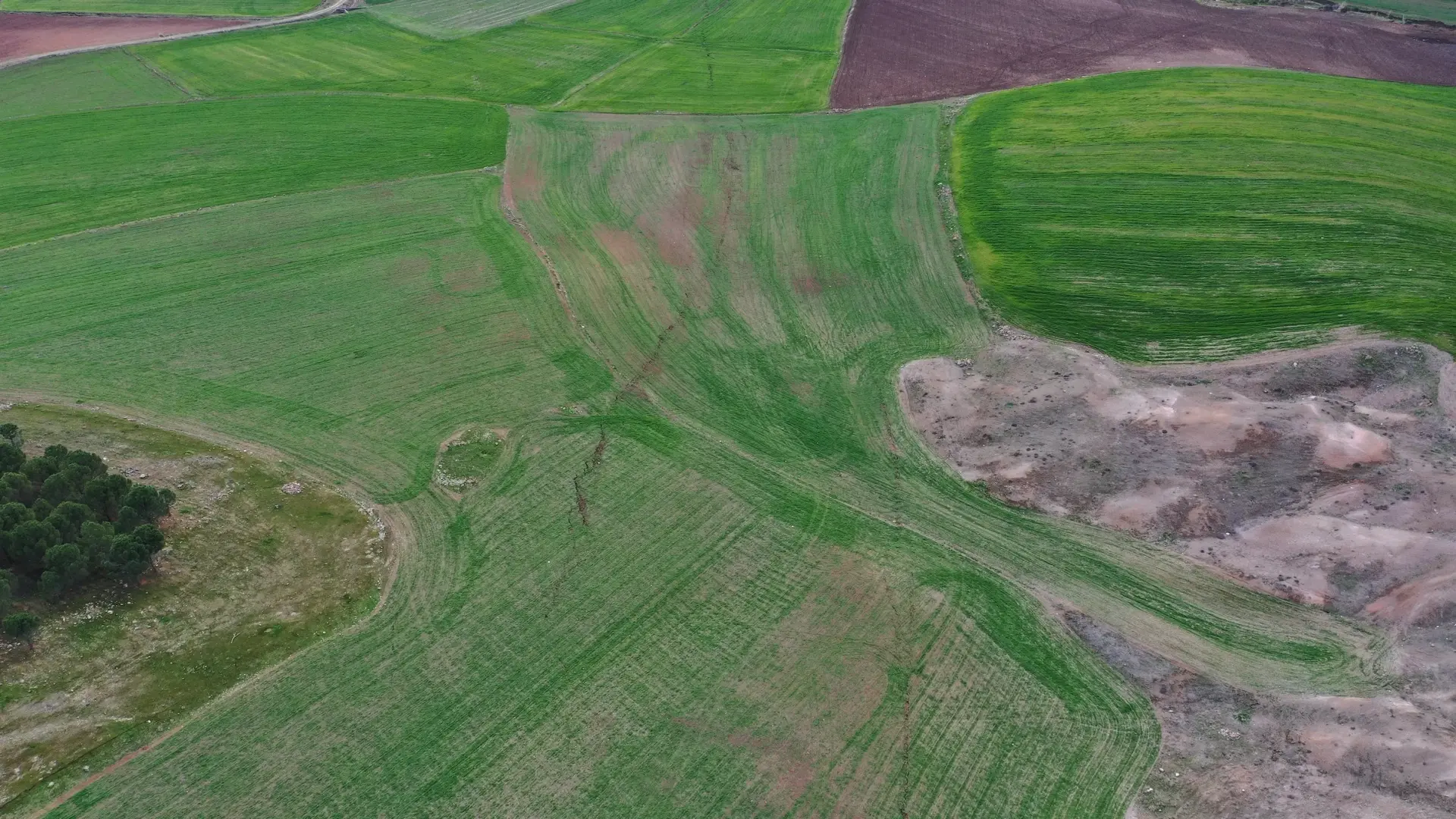 صور الدرون تُظهر تشقق بساتين وحقول قريبة من المنازل في جنوب تركيا (رويترز)