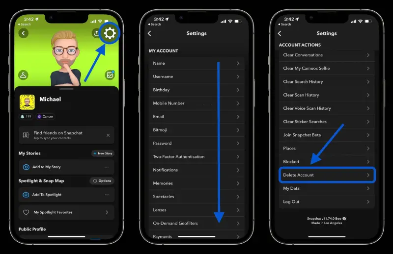 إذا كان هاتفك الذكي يعمل بنظام Ios، عليك اتباع الخطوات التالية لتتمكن من حذف حساب سناب شات:
