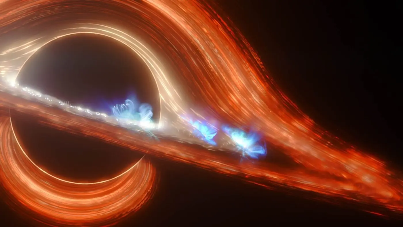 ورغم أن الثقب الأسود نفسه لا يمكن رؤيته، رصد العلماء وميضًا متغيرًا من الغاز الساخن الذي يدور على مسافة قريبة للغاية من حد اللاعودة المعروف بأفق الحدث.