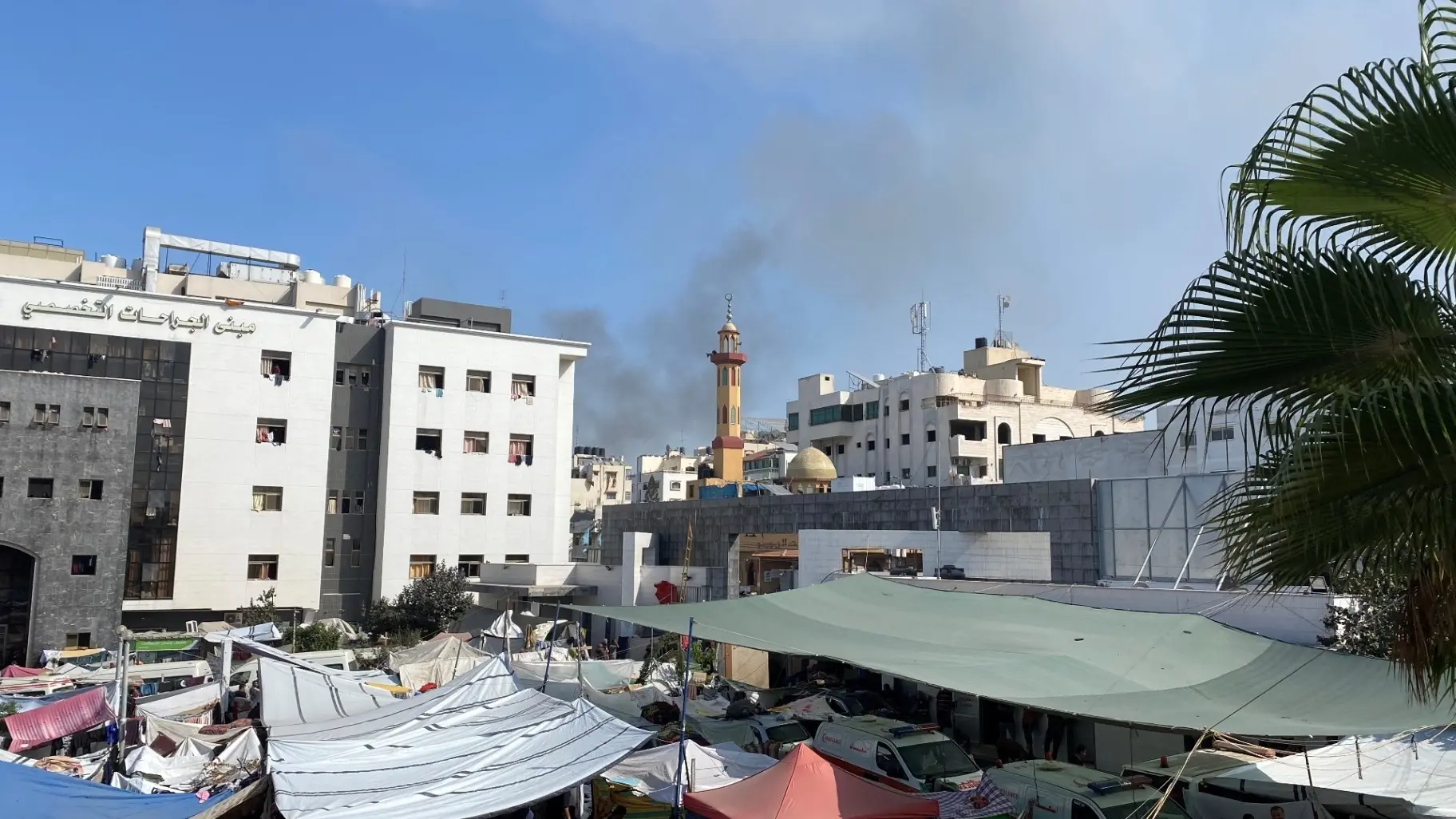 وأفادت وكالة الأنباء الفلسطينية أن الطاقم الطبي في المجمع أبلغ اللجنة الدولية للصليب الأحمر، وطلب منها تحركا عاجلا لضمان عدم المساس بأي من المتواجدين في المجمع، الذي يؤوي آلاف النازحين.