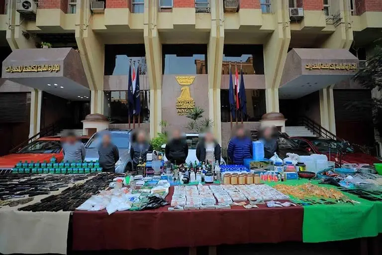 وضبط رجال إدارة مكافحة المخدرات، 7 أشخاص من التشكيل العصابي، بحوزتهم كمية 46 كيلو جرام لمخدر الحشيش الاصطناعي "البودر"، بالإضافة إلى كمية 2500 كيلو جرام من مخدر "الشابو"، بالإضافة إلى 4 بنادق آلية، بندقية خرطوش، 6 فرد خرطوش، 26 طبنجة، 2 سلاح ناري "مقروطة" محلية الصنع، 6 طبنجة صوت، عدد من الطلقات مختلفة الأنواع، كمية من المشغولات الذهبية وزنت أكثر من 8.5 كيلو جرام، 6 ساعة يد، 15 هاتف محمول، لاب توب، مبالغ مالية كبيرة محلية ودولية، 11 سيارة مختلفة الأنواع، وقدرت على هذه المضبوطات بـ 122 مليون جنيه مصري، وتم اتخاذ الإجراءات القانونية وتولت النيابة العامة التحقيق.