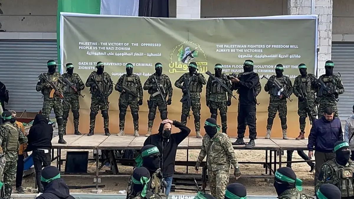 ووصلت سيارات تابعة للصليب الأحمر الدولي في غزة، إلى ساحة ميدان بغزة، بينما كان يحتشد العشرات من مقاتلي كتائب القسام التابعة لحركة "حماس" في مشهد استعراضي، حيث أقيمت منصة بينما تجمع حشد من الفلسطينيين حولها. وعلقت لافتة على المنصة كتب عليها بالعبرية "الصهيونية لن تنتصر".