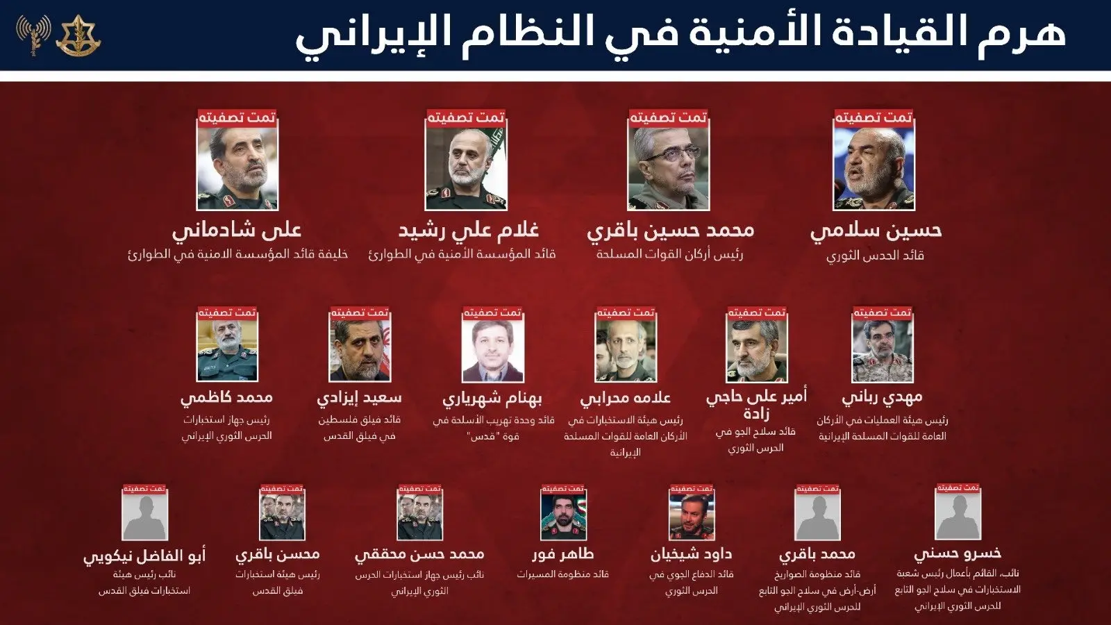 أعلن الجيش الإسرائيلي، الجمعة، عن محصلة عمليته العسكرية داخل إيران، والتي استمرت 12 يوماً، كاشفاً عن نتائج وصفها بـ"الاستراتيجية"، من بينها القضاء على 11 عالماً نووياً بارزاً، واستهداف واسع للبنية التحتية العسكرية والنووية الإيرانية.