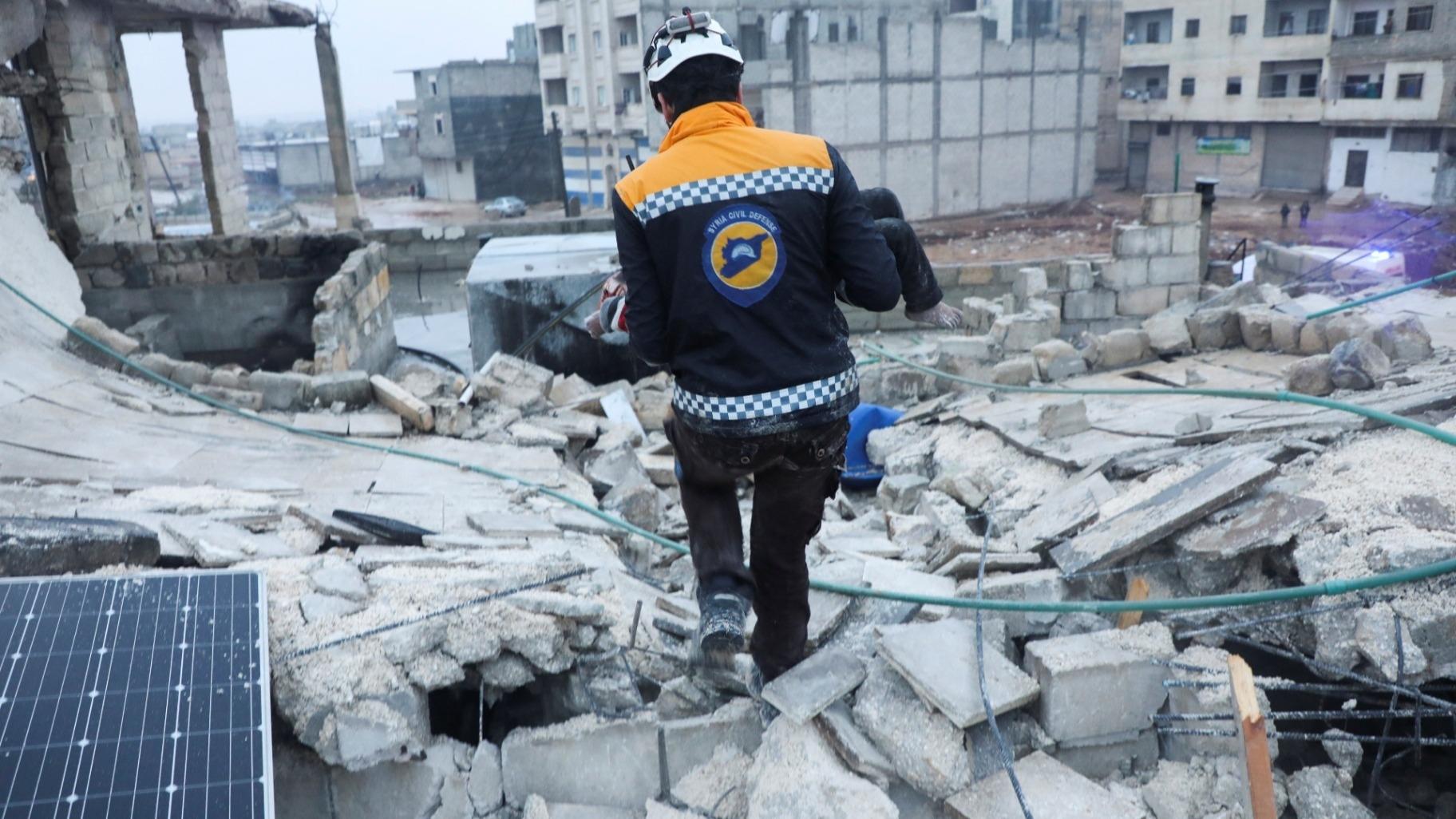 تمكن رجال الإسعاف من إنقاذ طفلة سورية من تحت الركام في مدينة أعزاز التابعة لمحافظة حلب، والتي تضررت بشكل كبير بسبب ارتدادت الزلزال المدمّر الذي ضرب تركيا.