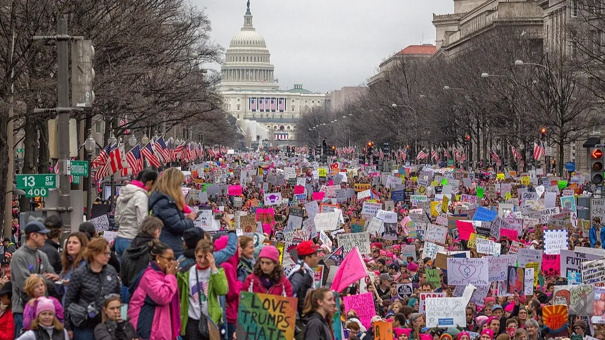 يذكر أنه في عام 2017، تدفقت النساء الغاضبات من فوز ترامب بالرئاسة عام 2016، إلى واشنطن ونظمن مسيرات حاشدة في مدن عدة بجميع أنحاء البلاد.
