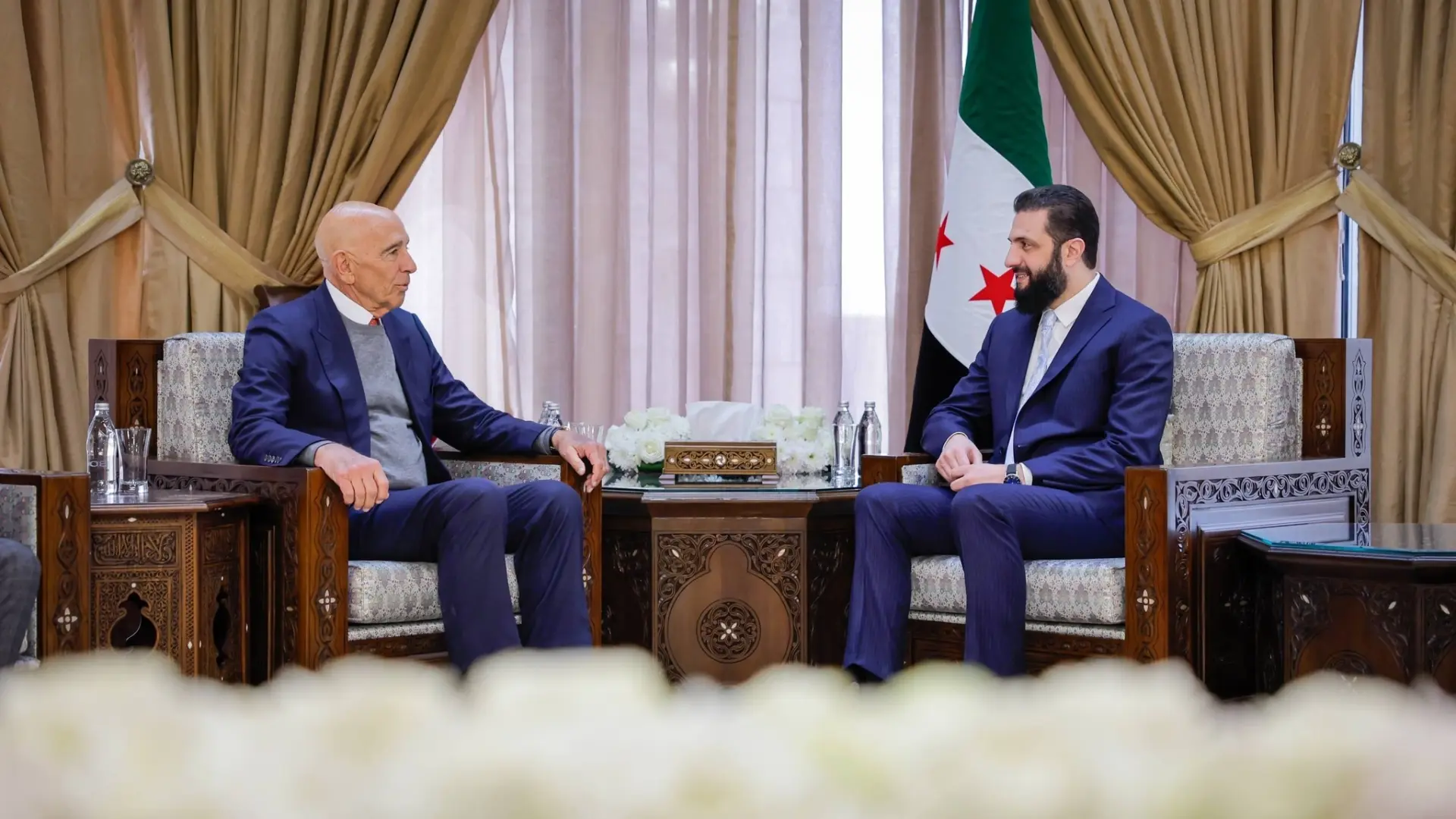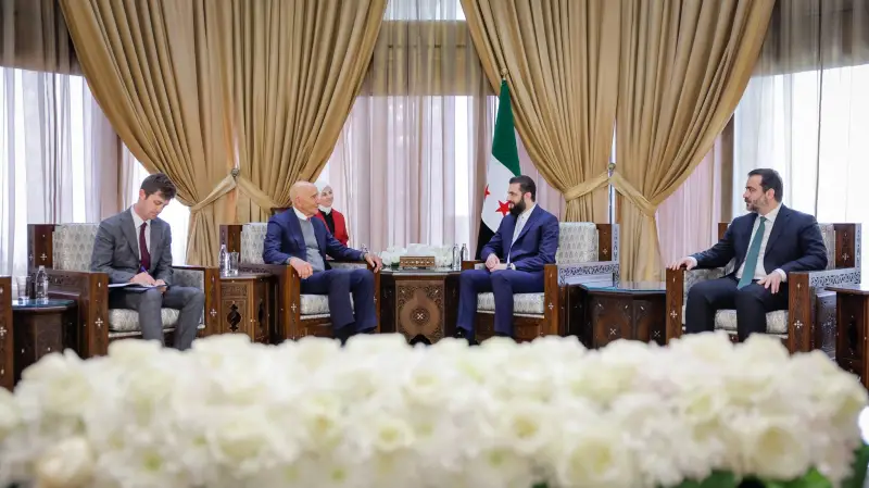 جاء ذلك خلال استقباله للمبعوث الأميركي الخاص إلى سوريا توم براك في دمشق، بحضور وزير الخارجية والمغتربين أسعد الشيباني، حيث شدد الشرع على أهمية الحوار في المرحلة الراهنة، وبناء سوريا بمشاركة جميع السوريين، إلى جانب مواصلة تنسيق الجهود في مكافحة الإرهاب.