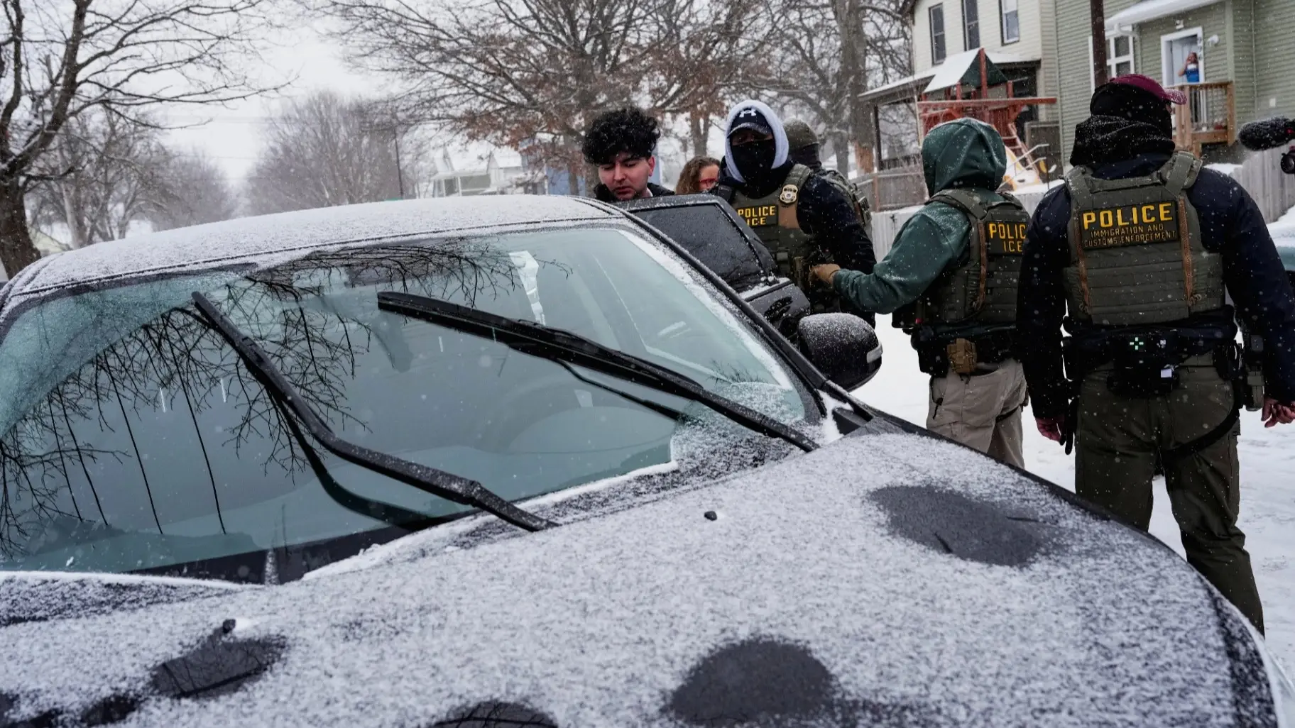 وعلى الرغم من درجات الحرارة المتجمدة، تظاهر مواطنون في المدينة للتنديد بأساليب عمل شرطة الهجرة لتوقيف المهاجرين غير النظاميين.