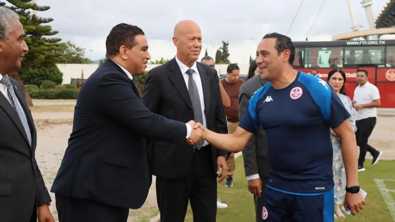 وظهر الوالي عز الدين شلبي رفقة وزير الرياضة التونسي وهو يزور منتخب تونس لكرة القدم، قبيل ساعات من مقابلته اليوم ضمن تصفيات كأس العالم.