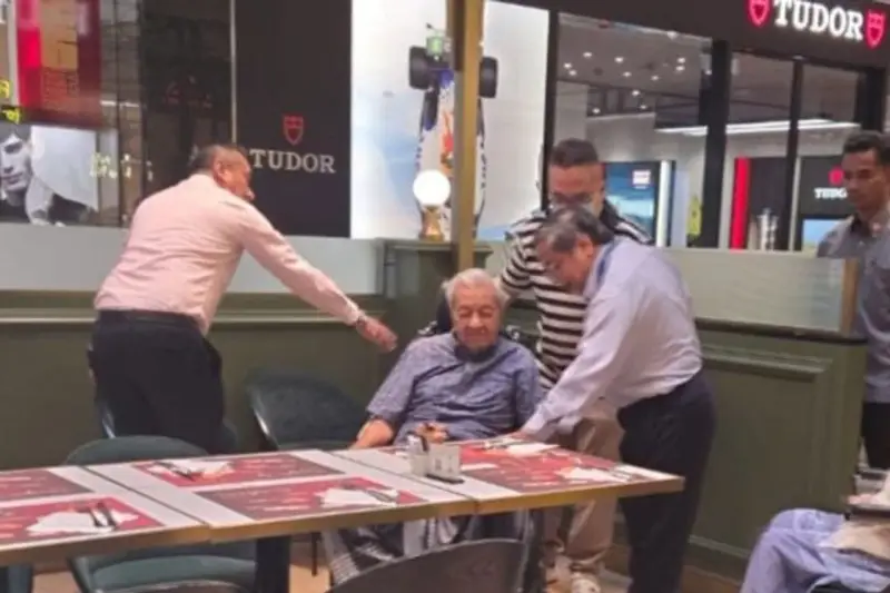 وفي صورة شاركها مساعده، ظهر مهاتير محمد وهو يجلس على كرسي متحرك في مقهى في مركز التسوق بافيليون دامانسارا هايتس.