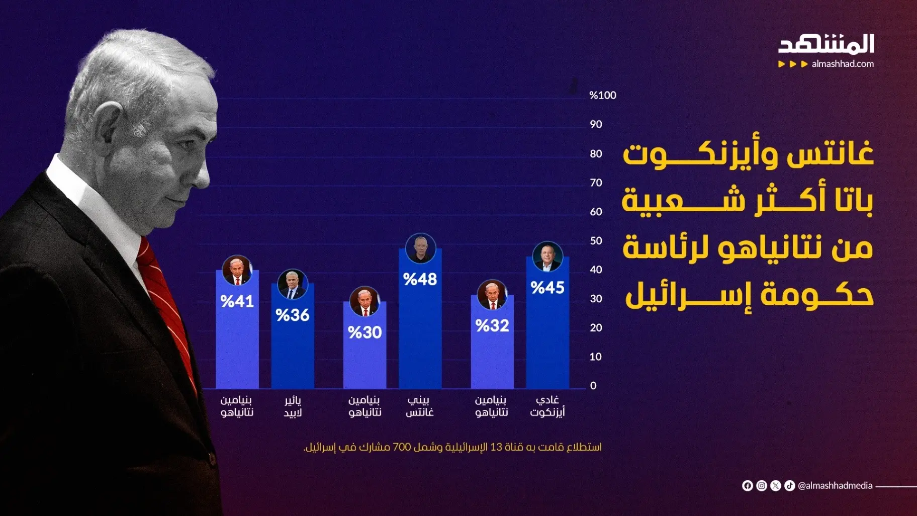 وحصل الوزير بمجلس الحرب غادي أيزنكوت على 45% مقابل 32% لنتانياهو.