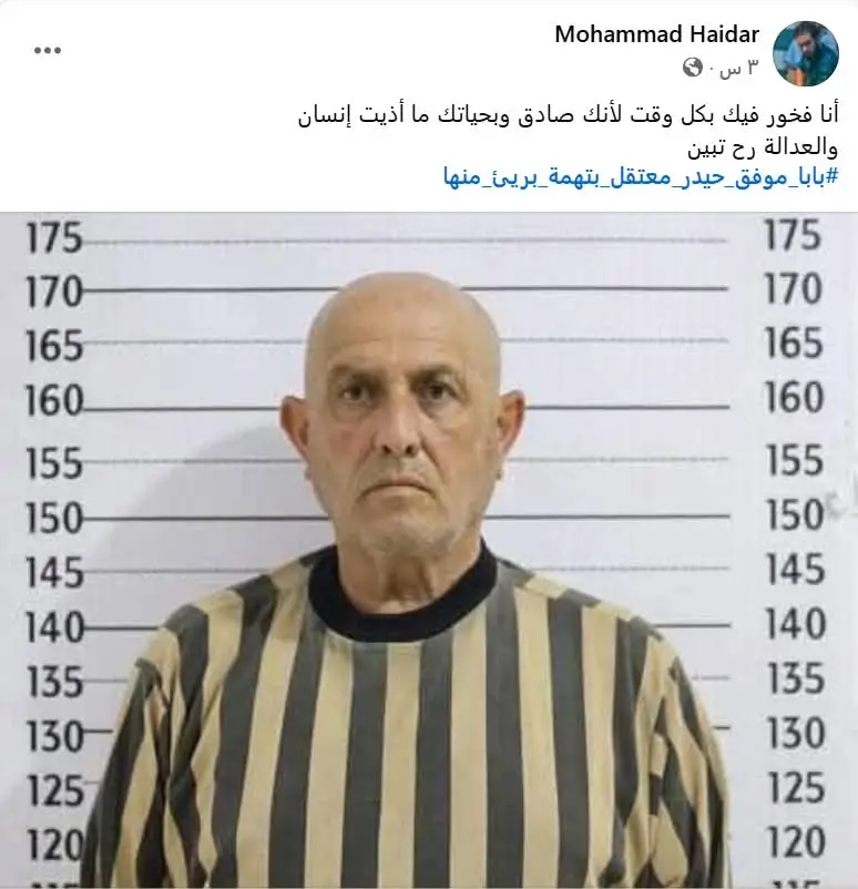 ولم تمرّ الساعات حتى انتشر على منصة "إكس" تعليق من محمد حيدر، نجل اللواء الموقوف، عبّر فيه عن "فخره بوالده"، قائلُا إنه "واثق من براءته، وأنه لم يؤذِ أحدًا".