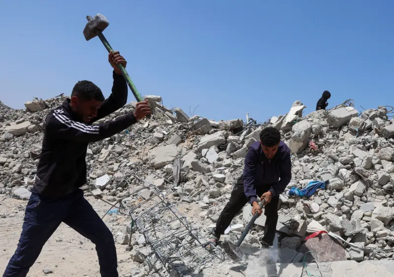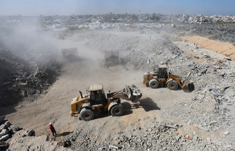 يستخدم الفلسطينيون أنقاض الحرب لرصف الشوارع التي دمرت خلال الحرب الإسرائيلية التي استمرت عامين على غزة، حيث يقومون بسحق الخرسانة والمعادن لتحويلها إلى مواد لتعبيد الطرق في إطار مشروع تديره الأمم المتحدة، ويأملون أن يشكل ذلك خطوة أولى نحو إعادة تأهيل مدنهم المتضررة.