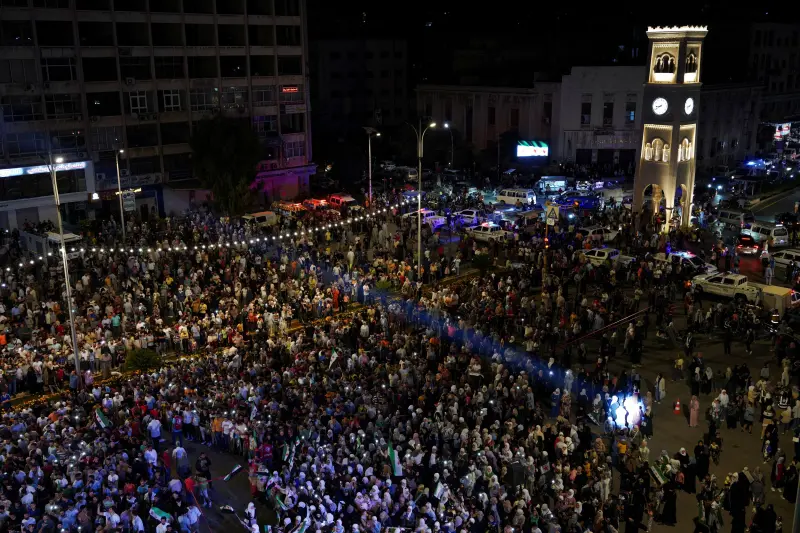 وعمت الأجواء الاحتفالية مراكز معظم المحافظات السورية. وتتضمن الحفلات عروضاً بصرية عالية الاحترافية، تجسد الهوية الجديدة.