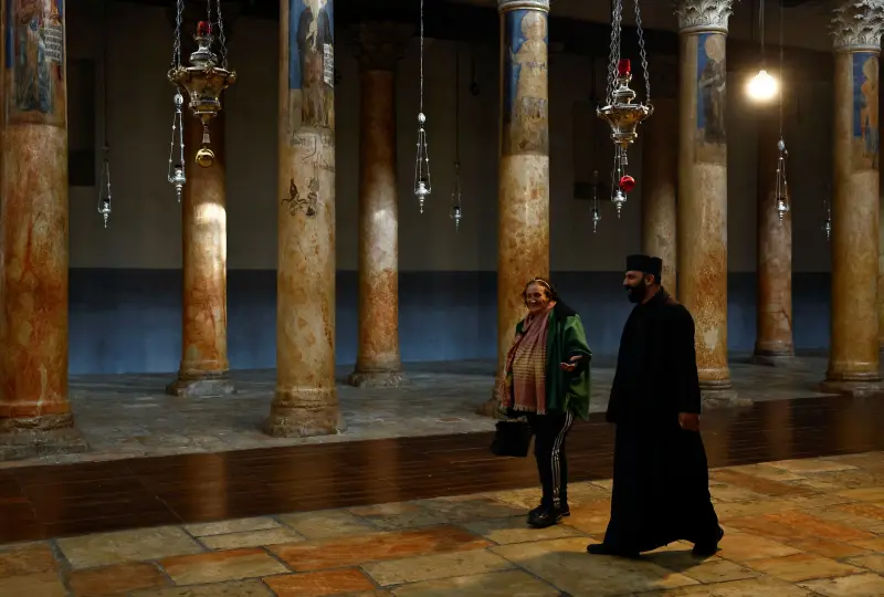 وبينما تبدو ساحة كنيسة المهد فارغة من المارة والسياح، تقام الصلوات من أجل أهالي غزة، كنيسة المهد التي أقيمت على المغارة التي ولد فيها السيد المسيح، فيما بدت أزقة البلدة القديمة وأسوار الكنيسة الأهمّ للمسيحيّين حول العالم، خالية من مظاهر الزينة وطقوس العيد، وغابت شجرة الميلاد وحلّت مكانها مغارة الميلاد تحت الأنقاض.