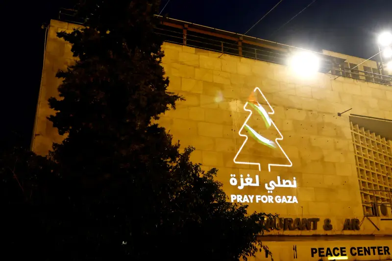 قرب كنيسة القيامة في مدينة القدس، لا شجرة عيد، ولا أنغام، ولا أطفال يلهون بالهدايا، فالحياة معلقة هنا إلى حين وقف الحرب الإسرائيلية على غزة، وفي قرار استثنائيّ اتفقت الكنائس المسيحية في مدينة القدس، على إلغاء الاحتفالات الخاصة بعيد الميلاد المجيد، بفعل الحرب الإسرائيلية في قطاع غزة، كرسالة تضامن من رؤساء الكنائس المسيحية بالقدس، فيما غابت شجرة الميلاد والزينة عن أزقّتها العتيقة، وخفتت الأضواء وأصوات الفرق الكشفية، حتى المارة والسياح.
