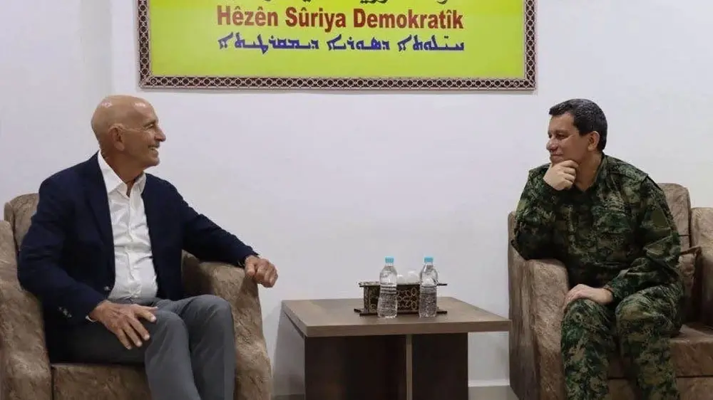 احتضنت مدينة أربيل بإقليم كردستان العراق اجتماعا ضم المبعوث الأميركي الخاص إلى سوريا توم براك، وقائد قوات سوريا الديمقراطية "قسد" مظلوم عبدي ورئيس الحزب الديمقراطي الكردستاني مسعود بارزاني، وهو ما أثار التساؤلات خلال الساعات الماضية عن تفاصيل اجتماع براك وعبدي وبارزاني.