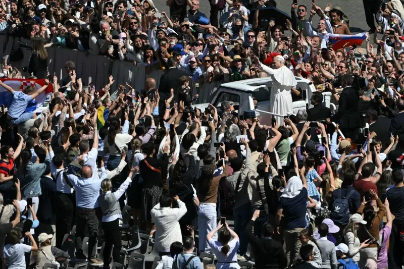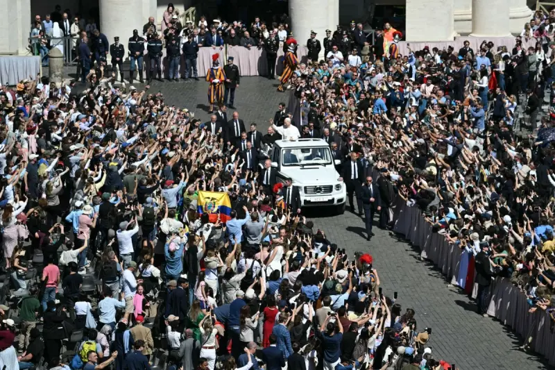 من الشرفة المركزية لكاتدرائية القديس بطرس، هنأ البابا المؤمنين بعيد الفصح بـ10 لغات، من بينها العربية والصينية، وهو تقليد تخلى عنه سلفه البابا فرنسيس، قبل أن ينطلق في جولة بالسيارة البابوية إلى الشارع الرئيسي المؤدي إلى الساحة، وسط هتافات الحشود.