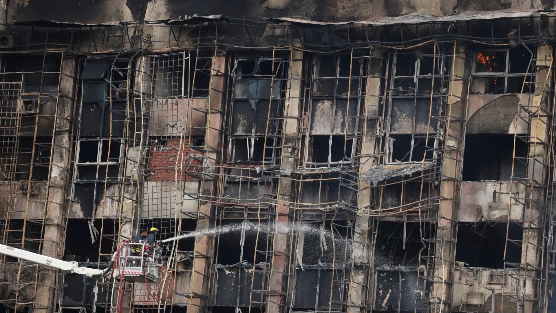 وأسفرت المعاينة عن تفحمٍ بكامل مبنى مديرية الأمن، وألسنة اللهب تتصاعد من طوابقه العُليا، ورجال الإطفاء والحماية المدنية، مدعومين بطائراتٍ للقوات المسلحة، في سعيٍ حثيث للسيطرة على الحريق وإخماده، إضافة إلى عملياتِ إجلاءِ المصابين عبر سيارات الإسعاف الموجودة بمحل الواقعة.