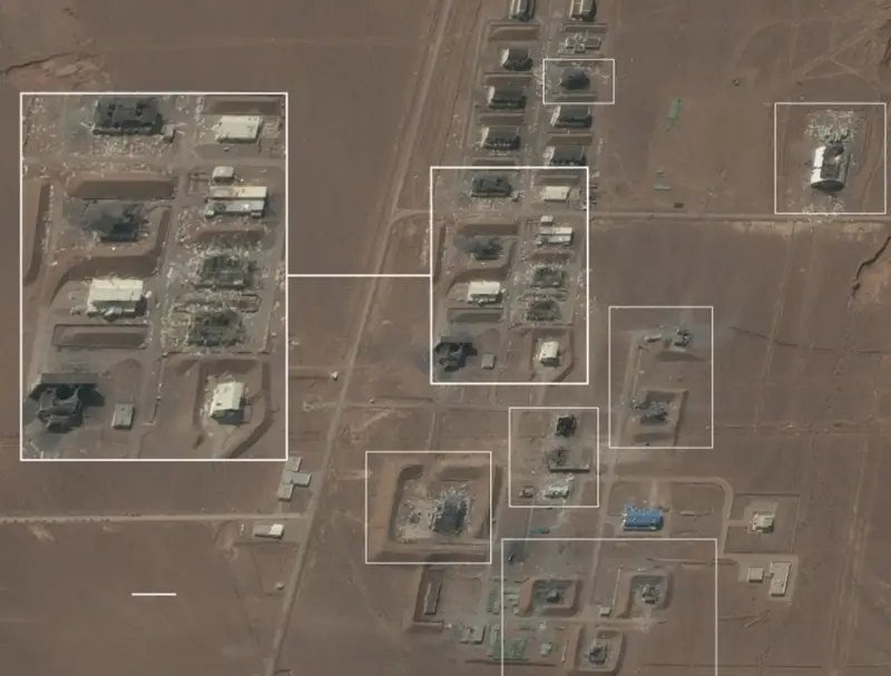 وأظهرت صور الأقمار الاصطناعية تدمير 88 مبنى في مجمع خوجير شرق طهران، فيما تكبد مجمع شاهرود خسائر في 28 هيكلا على الأقل. أما بارشين، فقد أصيب فيه 12 مبنى، بينما تعرضت الحكيمية لضربات طالت 19 منشأة بينها مصانع للوقود السائل.