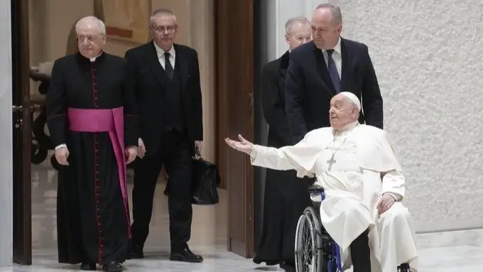 ويتنقل البابا بواسطة كرسي متحرك منذ عام 2022 بسبب آلام مستمرة في الركبة وعليه الاستعانة بعكاز عند الوقوف.