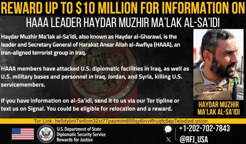 جاء عرض المكافأة ضمن برنامج "مكافآت من أجل العدالة" التابع لوزارة الخارجية الأميركية، في خطوة تؤكد تصاعد القلق الأميركي من نشاط الميليشيات المرتبطة بطهران.