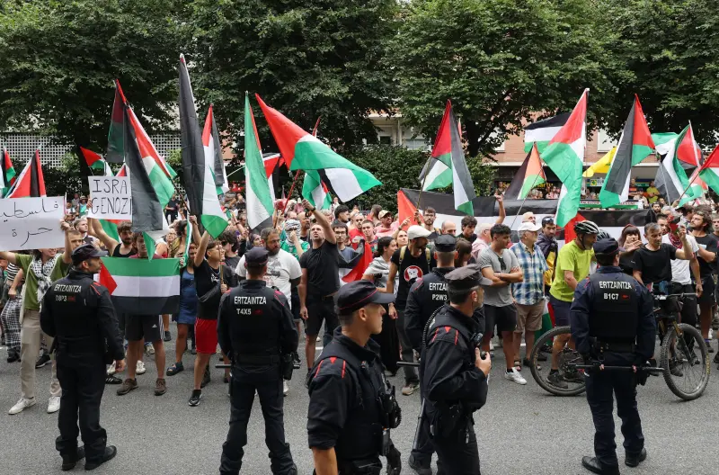 وقعت الأحداث في مدينة بلباو الإسبانية، حيث تجمّع عدد من المتظاهرين بالقرب من خط النهاية حاملين الأعلام واللافتات المؤيدة لفلسطين، مرددين هتافات داعمة للقضية الفلسطينية.
