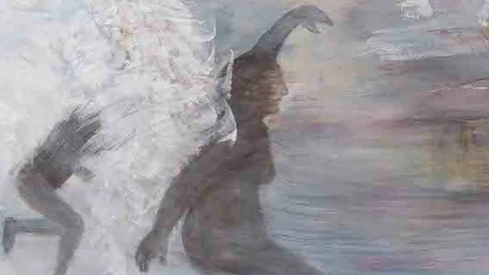 وذكر بيان المعرض أن هذا العمل "يتميز بألوانه غير المألوفة، وهو نموذج لأسلوبه المميز الذي يصور رجالا ونساء وحيوانات ضمن سياق الحياة الشعبية ويبدو كمشهد من قصة. وتحيط بالأشخاص والحيوانات زخارف جميلة بتفاصيل دقيقة مضيفة ثراء على المشهد"