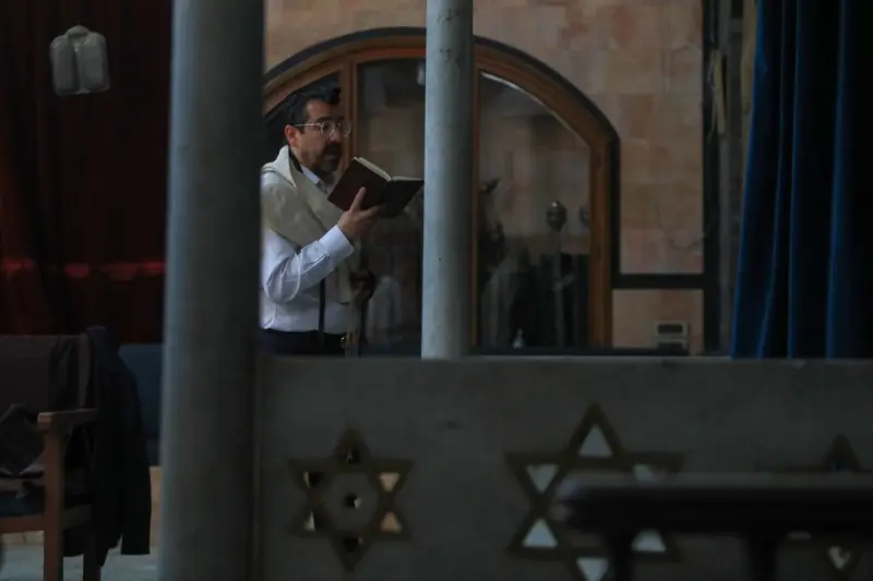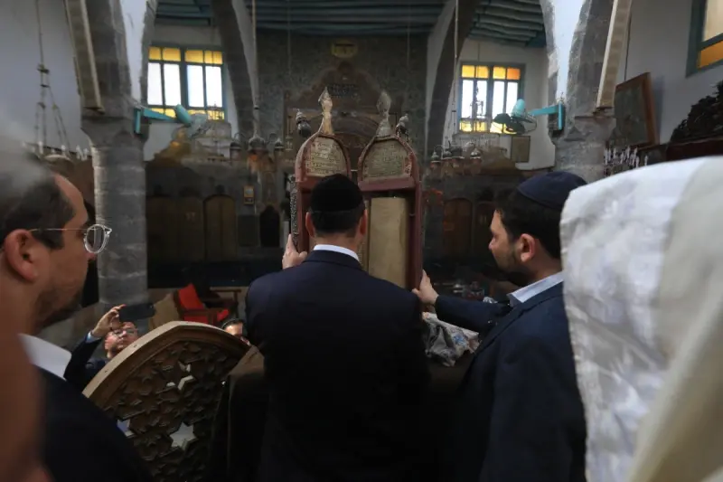 في مشهد يعكس محاولات إحياء التراث اليهودي السوري بعد عقود من الغياب، أدى وفد من اليهود السوريين المقيمين في الولايات المتحدة صلاة صباح الثلاثاء في كنيس الإفرنج داخل دمشق القديمة، وفق ما أفاد به مصور لوكالة فرانس برس.