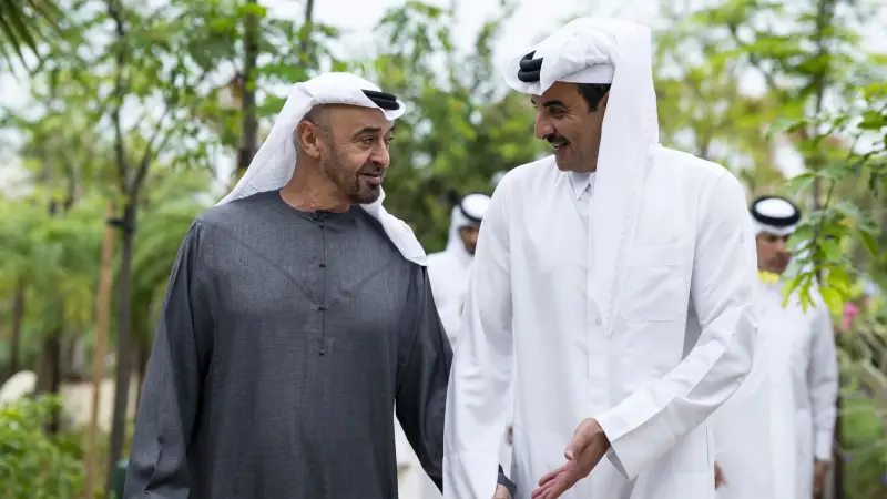 بحث الشيخ محمد بن زايد آل نهيان رئيس دولة الإمارات مع الشيخ تميم بن حمد آل ثاني أمير قطر، تطورات الأوضاع في المنطقة في ظل التصعيد العسكري وتداعياته على الأمن والاستقرار الإقليمي والدولي بجانب تأثيراته الخطيرة على أمن الملاحة الدولية والاقتصاد العالمي.