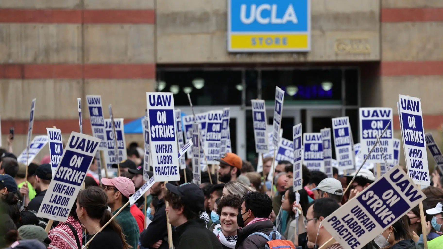 وقال المنظمون إنّ الباحثين الأكاديميّين النقابيّين ومساعدي التدريس الخريجين، وعلماء ما بعد الدكتوراة في جامعة كاليفورنيا بلوس أنجلوس، أضربوا عن أعمالهم بسبب ما يعتبرونه ممارسات متحيزة في تعامل الجامعة مع تظاهرات مؤيدة للفلسطينيّين خلال الأسابيع القليلة الماضية.