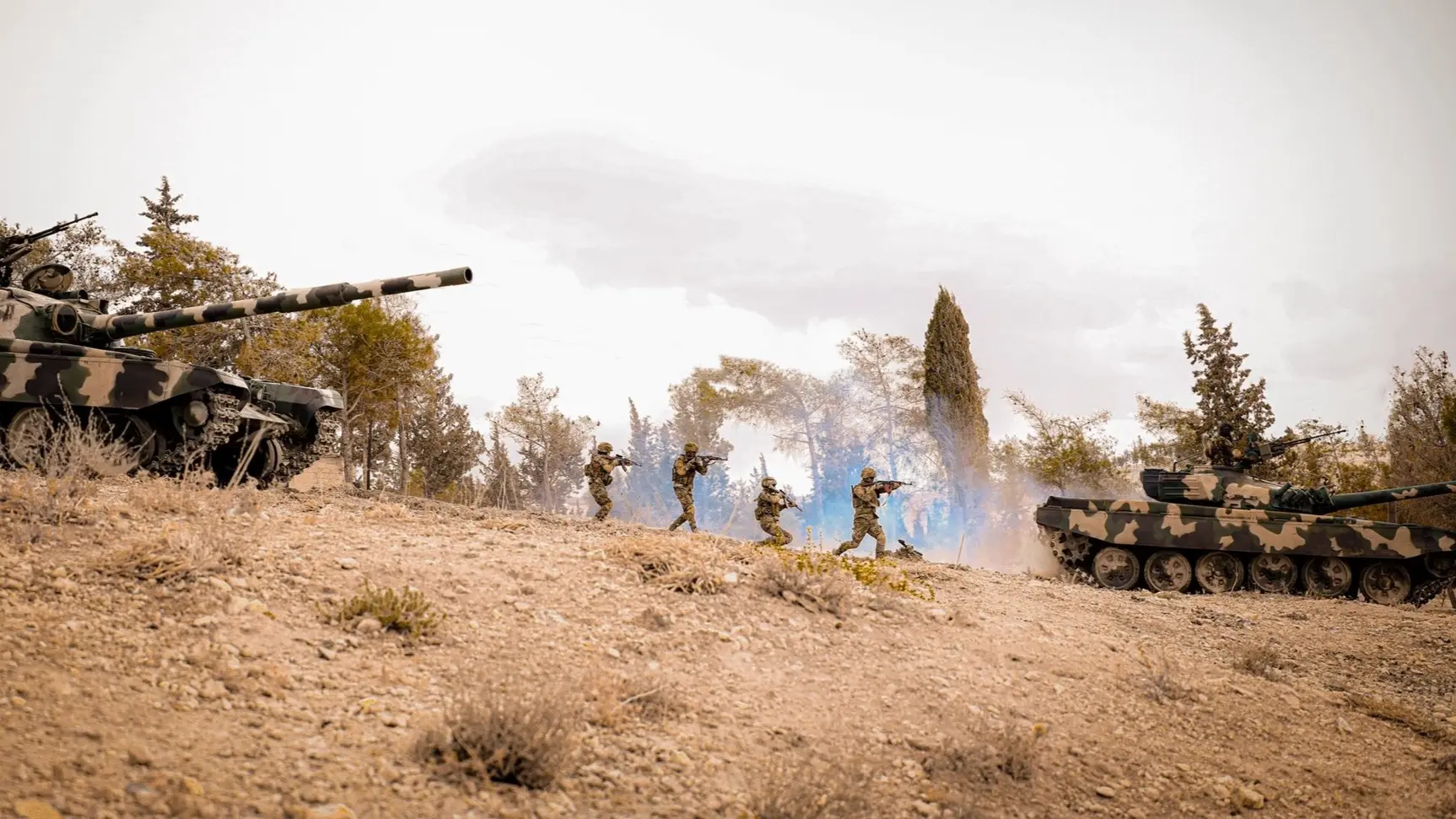 في منطقة وعرة قرب الحدود السورية اللبنانية، تُقيم جرافات تابعة للجيش السوري سواتر ترابية تتمركز خلفها مدرعات، فيما يمشّط جنود أنفاقا قالوا إن "حزب الله" استخدمها خلال سنوات النزاع السوري، في إطار تعزيزات عسكرية في خضم الحرب الدائرة في الشرق الأوسط.