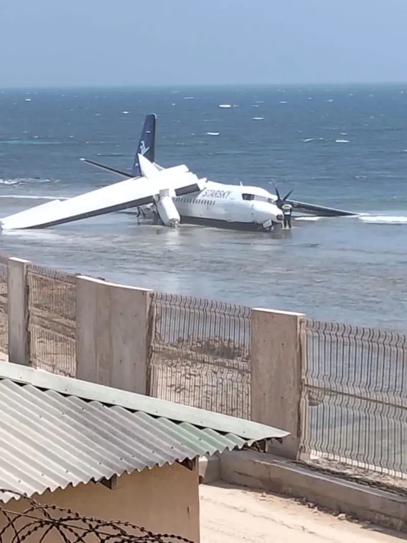 وتعرضت الطائرة، وهي من طراز فوكر 50 وتشغلها شركة ستار سكاي للطيران، لمشكلة فنية لم يتم تحديدها بعد وقت قصير من إقلاعها الثلاثاء. واضطرت للعودة إلى مطار آدم عدي الدولي في مقديشو، حيث انزلقت عن المدرج، ولم تتوقف إلا عند شاطئ البحر.
