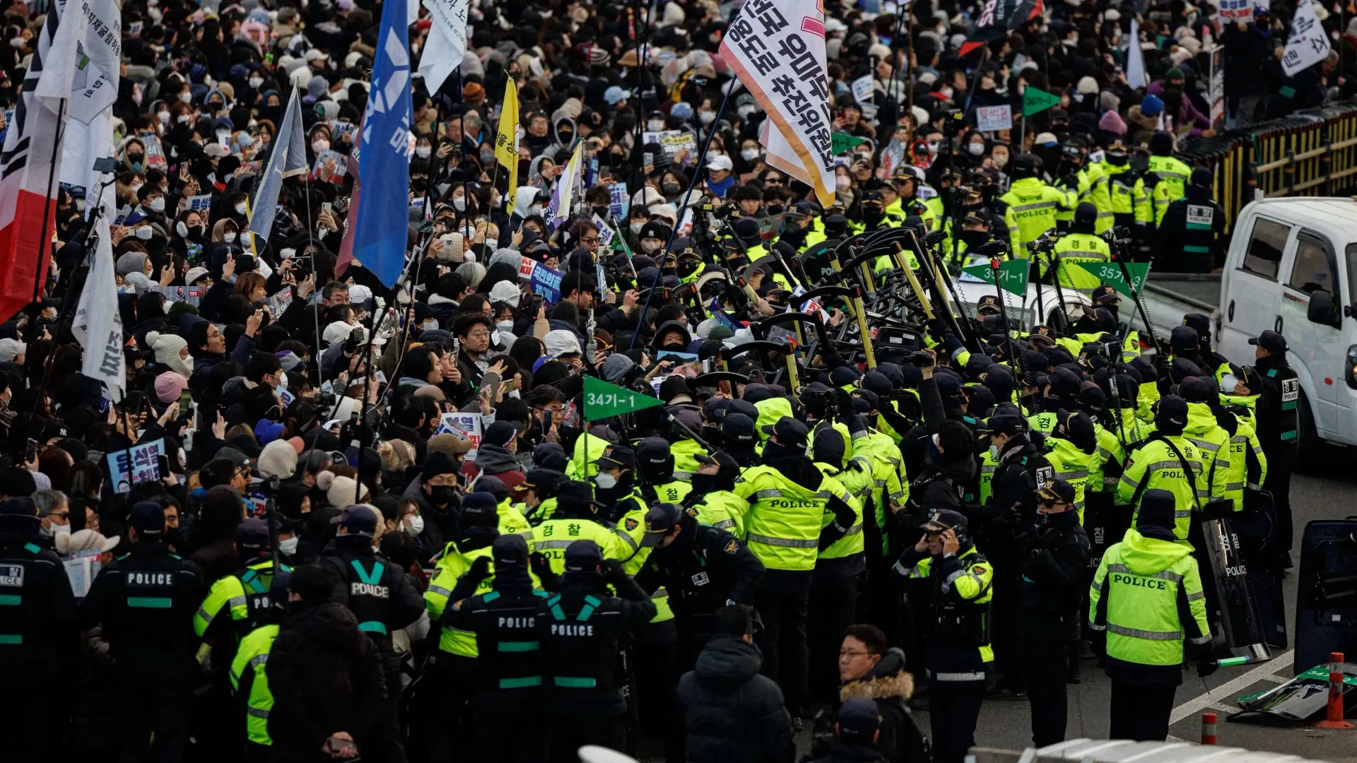ودفعت الأزمة المتواصلة من شهر والمواجهة التي وقعت الجمعة بين المحققين وجهاز الحماية الرئاسي، بمكتب التحقيق والحزب الديمقراطي المعارض إلى الطلب من تشوي سانغ-موك، رئيس الجمهورية بالوكالة، إصدار أمر لجهاز الحماية بالتعاون في القضية.وقال مسؤول في مكتب التحقيق الجمعة إن 20 محققا بمؤازرة 80 شرطيا شاركوا في العملية، لكنهم واجهوا نحو 200 جندي وعنصر في جهاز الأمن الرئاسي شكلوا جدارا بشريا لمنعهم من المرور.