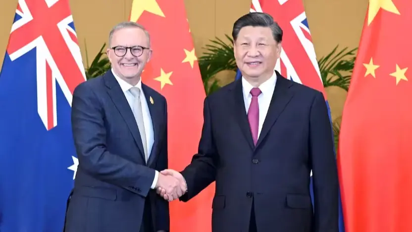 وزار رئيس الوزراء الأسترالي أنتوني ألبانيزي العاصمة الصينية بكين نوفمبر الماضي في رحلة وصفت بـ"التاريخية"، وهي الزيارة الأولى لزعيم أسترالي إلى الصين منذ 7 سنوات في ظل علاقات مضطربة بين الجانبين، وهي الزيارة التي وصفها ألبانيزي "خطوة إيجابية للغاية"، في استقرار العلاقات الثنائية المتوترة، وتأتي في إطار محاولة لإصلاح تدهور العلاقات بين البلدين.