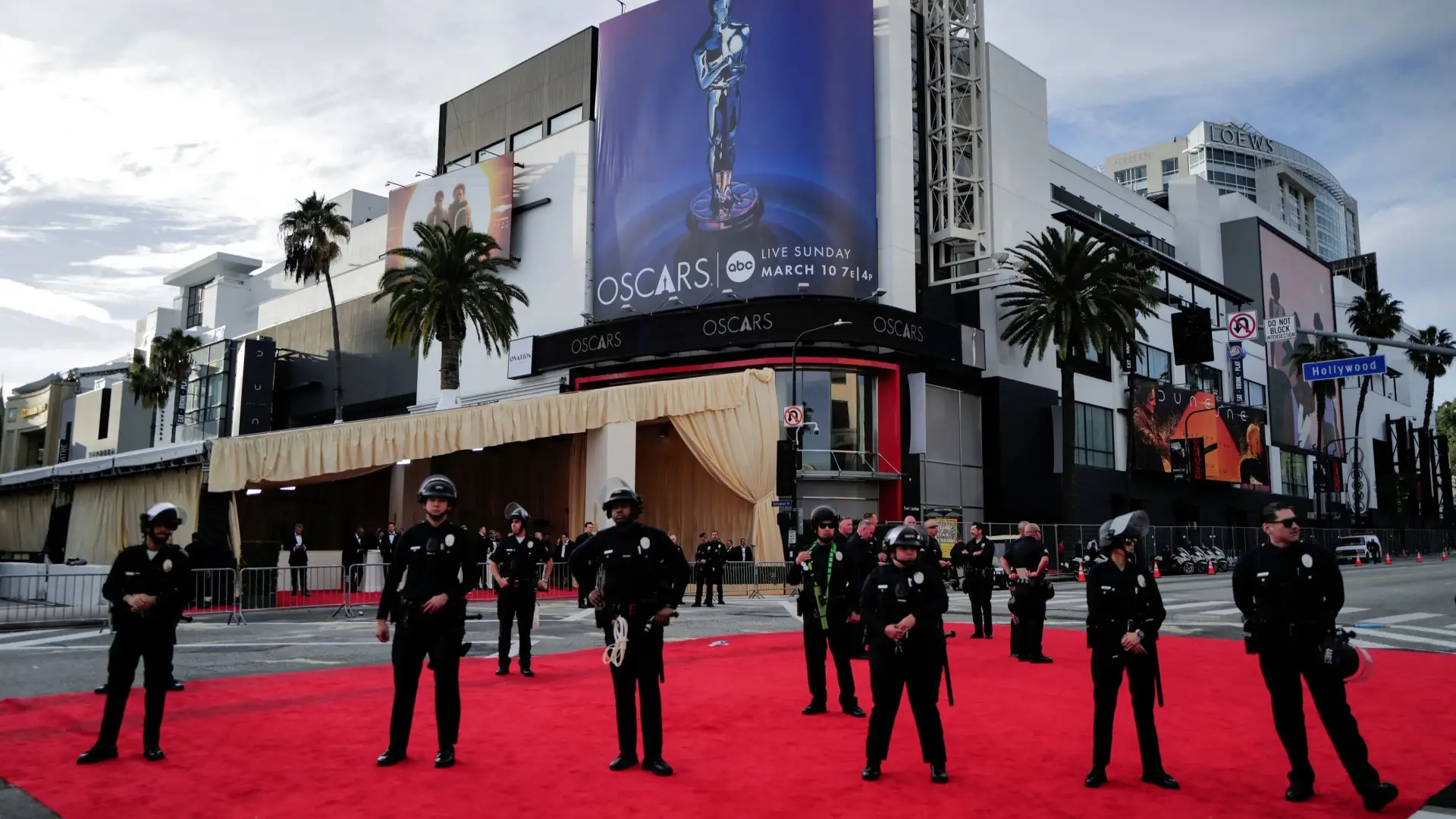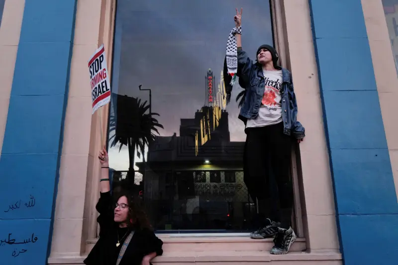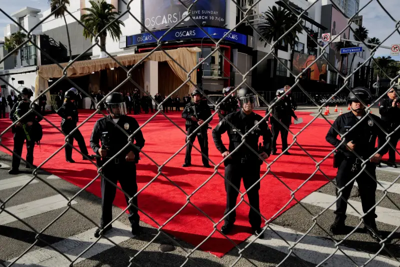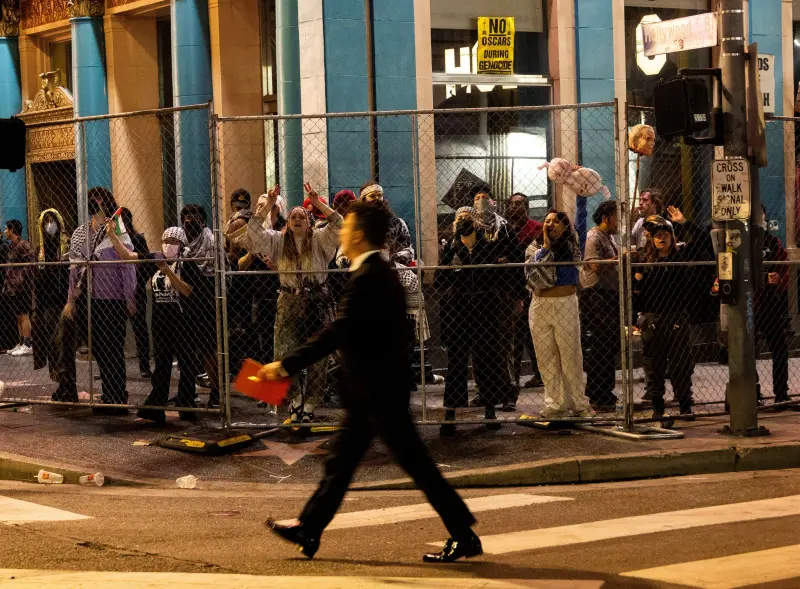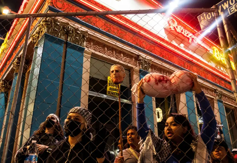 شهد حفل توزيع جوائز الأوسكار تأخيرًا بسيطًا مساء الأحد، وذلك نظرًا لاحتشاد متظاهرين مؤيدين للفلسطينيّين خارج مقر حفل توزيع الجوائز في لوس أنجلوس.